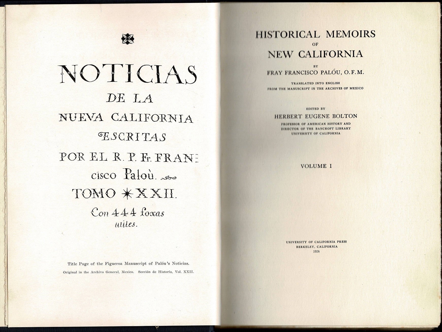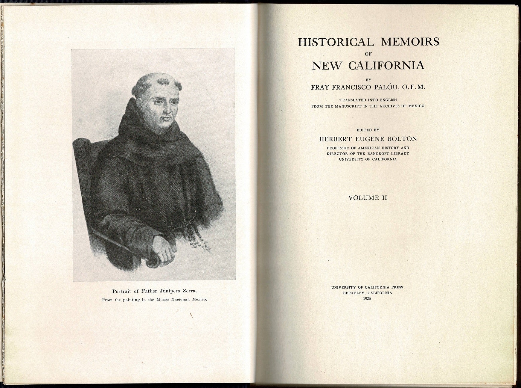 Author: Palóu, Francisco (1723-1789) edited by Herbert Eugene Bolton inscribed