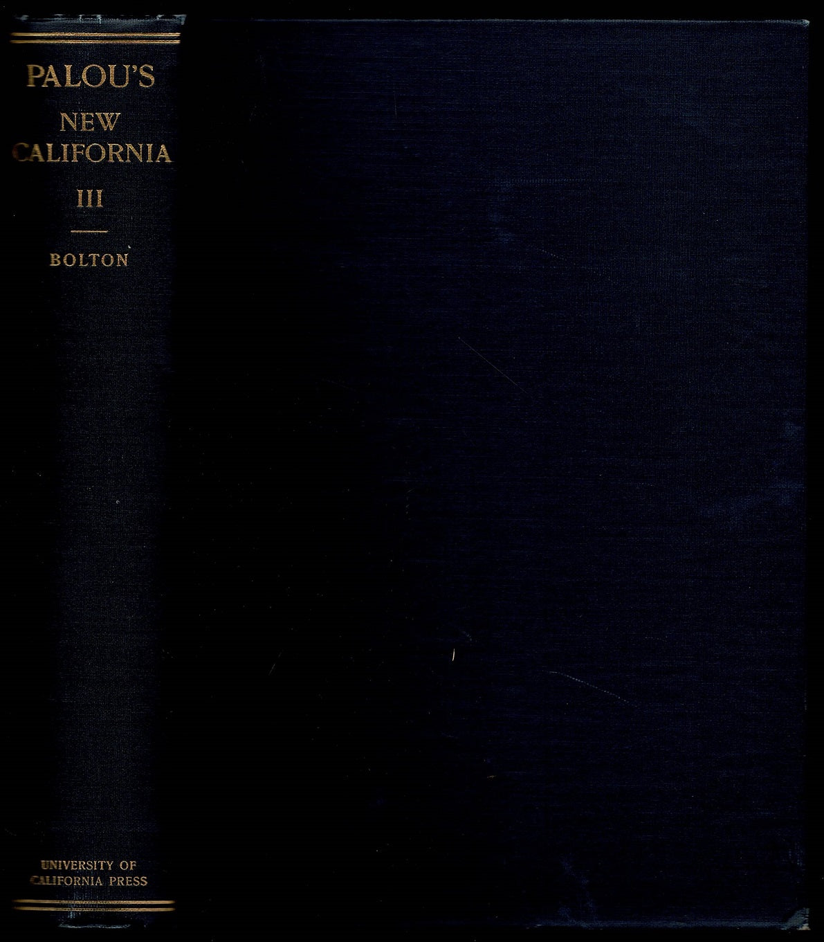 The offset printing of the Introduction to Palou's New California makes of the fivth volume which was originally in four volumes with 1700 pages, with 32 maps and illustrations.
