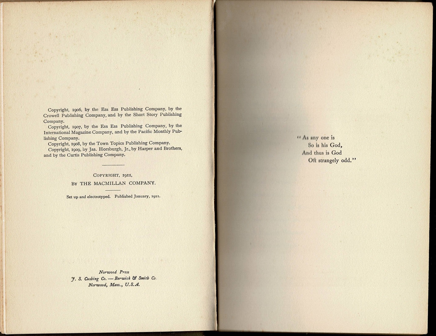 Named after the first story — about a couple that tries in vain to uphold an intensely idealistic romance against the erosions of time and the inconstancy of human nature — the collection explores themes for which London became famous: the struggle for survival in the midst of hostile environments, human nature's most elemental drives, and worker abuse in industrialized society. In The Apostate his concerns with the working poor and his dislike of pre-union-era capitalism are evident in a grim story about a young man who is brutalized by the subhuman working conditions in a textile mill, yet achieves a kind of liberation in the end. London's fascination with primitive male characters is evident in Just Meat, a story of two thieves who plot each other's demise in a selfish grab for a hoard of recently stolen jewelry. Like his famous novel The Sea Wolf, the stories Make Westing and The 'Francis Spaight' (described as "A True Tale Retold") portray corrupt sea captains abusing and terrorizing their crews during nightmarish voyages. In the concluding story, A Piece of Steak London starkly portrays the desperate struggles of an aging boxer as he grapples with a younger contender through most of a grueling twenty-round fight. As all of these stories vividly reveal, many of them brilliantly, no one had a more dispassionate and uncompromising view of human nature at its worst or could express it more forcefully than Jack London.