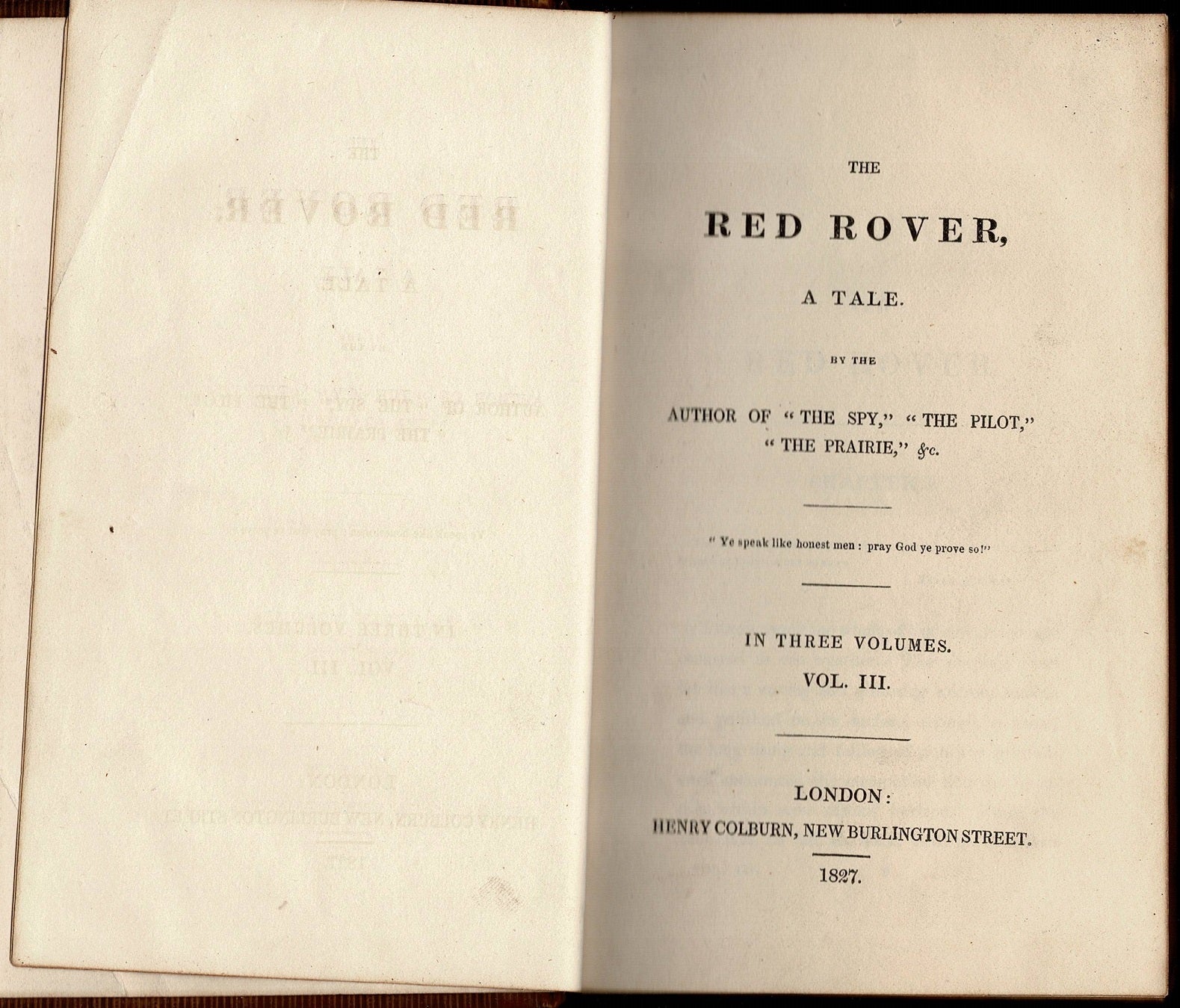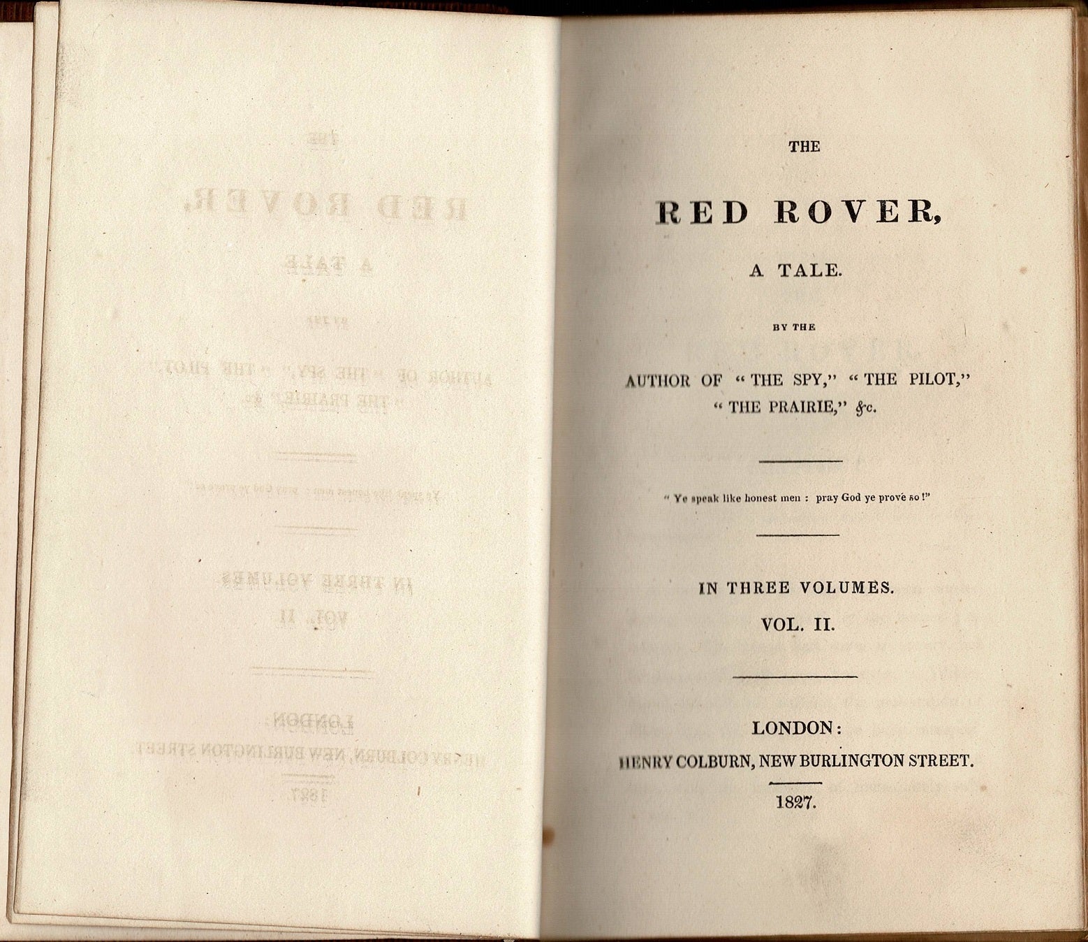 The Red Rover is a novel by American writer James Fenimore Cooper originally published in Paris on November 27, 1827. It was published in London three days later on November 30, and was not published in the United States until January 9, 1828 in Philadelphia. Soon after its publication it was adapted for theater both in the United States and in England.Characters--The two black characters, Scipio Africanus, a free black sailor, and Cassandra, a slave attendant, throughout the novel remain distanced and separate from their white companions. While all the other main characters end the book with positive outcomes, Scipio finds a tragic end. Therman O'Daniel suggests, that though these are some of the first black characters to be seriously treated in American literature, they still receive unsatisfactory outcomes for all their actions. For Cooper, the sea novel offered an opportunity to blur social barriers between characters. This is particularly evident in his treatment of women, such as a girl disguised as a cabin boy in The Red Rover who is able to function within the crew, even though she is female.