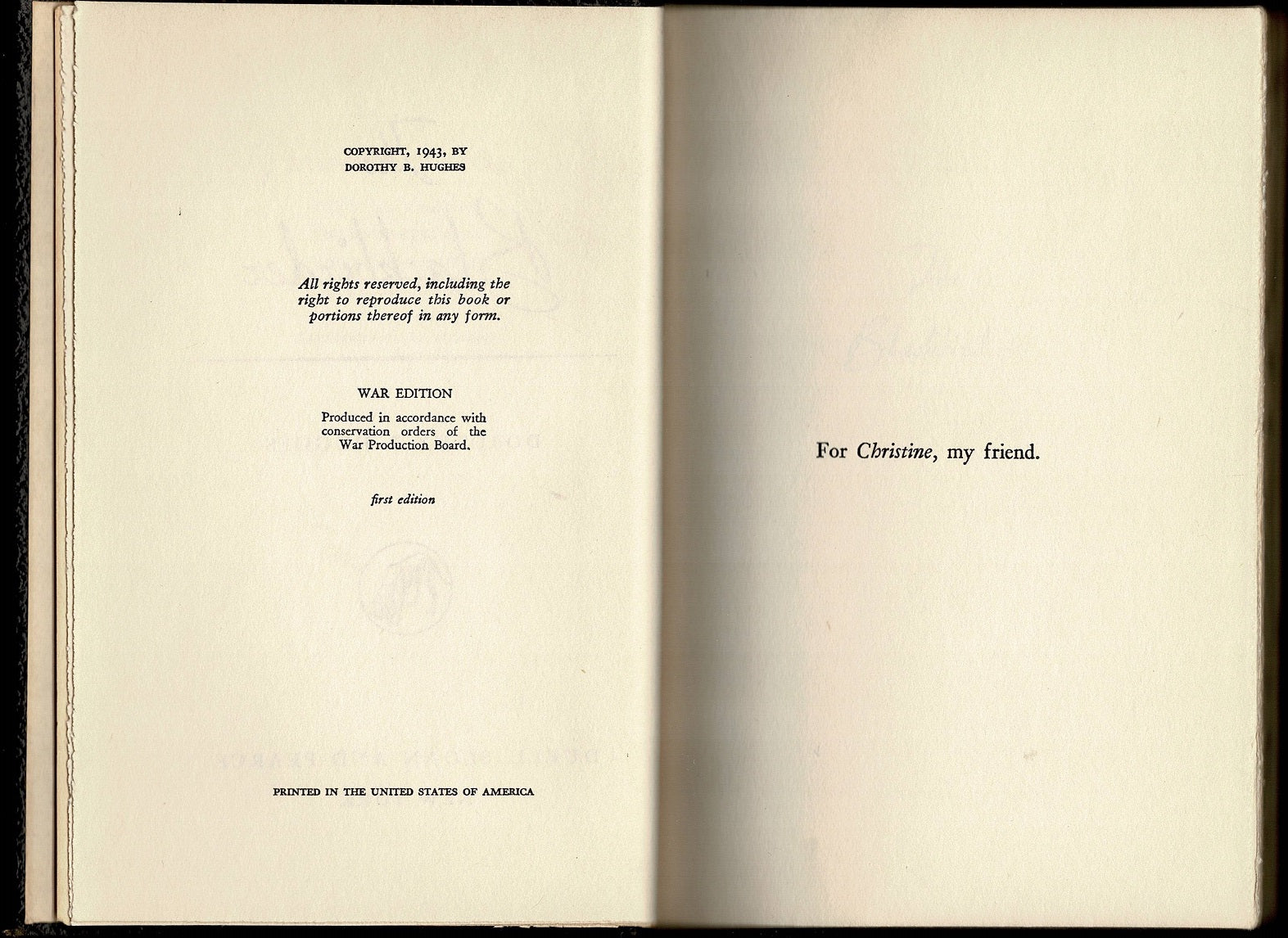 Author: Dorothy Belle Hughes (1904-1993) inscribed by author